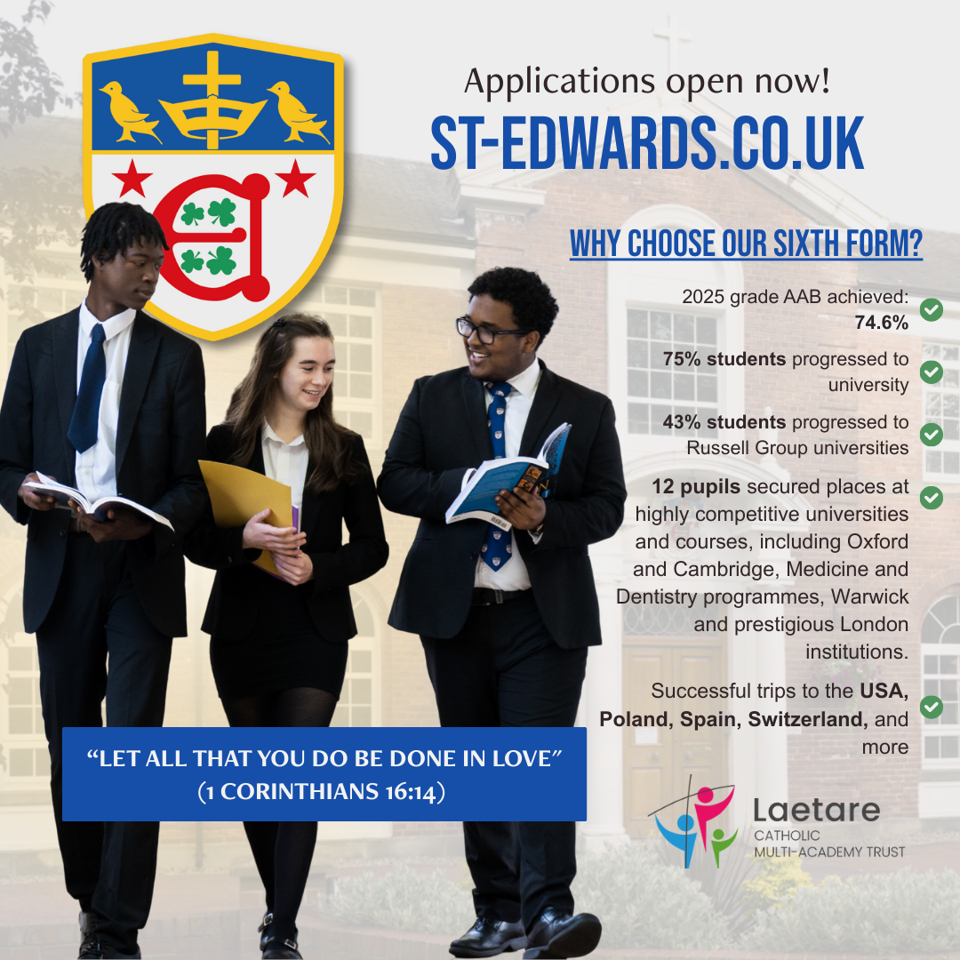 St Edward's College offers an inspiring and challenging Catholic education to over 1150 children from across the City and further afield. An explicitly Catholic culture prioritises serving God through serving one another in community, demonstrating commitment, caring for others and striving for success.